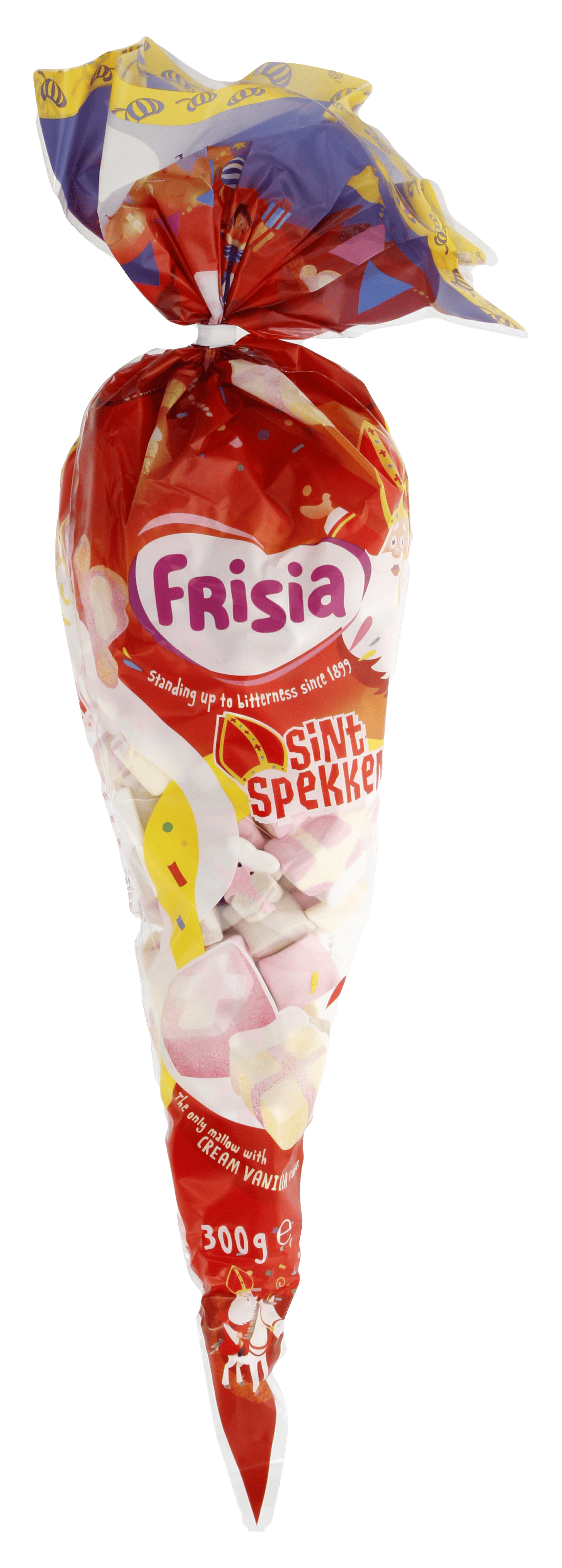 Een geslaagd Sinterklaasfeest met de Sintspekken van Frisia. Heerlijk zachte marshmallows in Sintvormen. De spekken zijn glutenvrij en hebben een zalige roomvanille smaak. Deel een zak mallows en maak mooie momenten nog lekkerder.