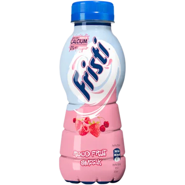 Ingrediënten: Magere gefermenteerde MELK, vloeibare MELKbestanddelen (weipermeaat), water, vruchtensap uit geconcentreerd sap 3% (1% aardbei, 1% framboos, 1% kers), suiker, fructosestroop, stabilisatoren: pectine, guargom, dikaliumfosfaat en trinatriumcitraat, voedingszuur: melkzuur, aroma, kleurstof: karmijn