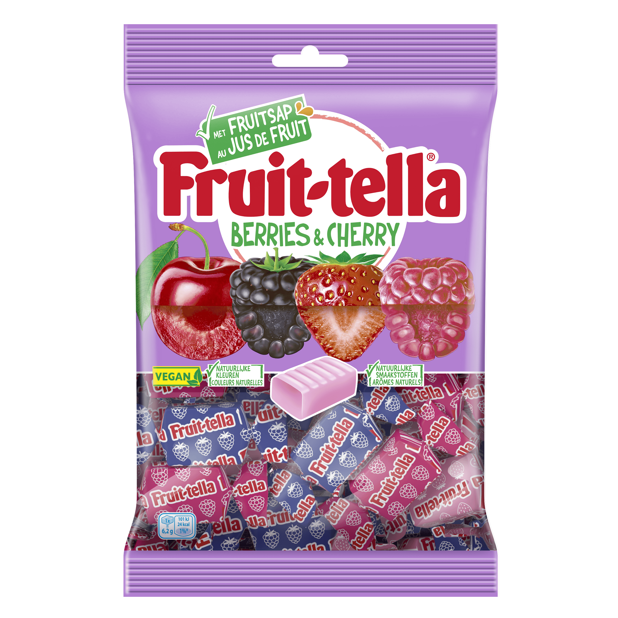 Ingrediënten: glucosestroop suiker, vruchtensappen (framboos, braam, aardbei, ker) (3%), kokosolie, voedingszuren (citroenzuur, appelzuur), maltodextrine, emulgatoren (mono- en diglyceriden van vetzuren, sucrose-esters van vetzuren), bevochtigingsmiddel (glycerol), concentraten (zwarte wortel, vlierbes), geleermiddel (arabische gom), cacaoboter, natuurlijke aroma's, verdikkingsmiddel (gellangom).