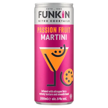 Ingrediënten: met stikstof doordrenkte alcoholische mixdrank met passievruchtensap en wodka