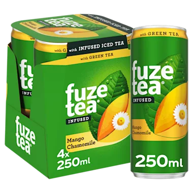 Ingrediënten: Getrokken groene thee 94% (water, geconcentreerde groene thee infusie⁺); suiker; mangosap uit concentraat (1%); voedingszuren: citroenzuur, natriumcitraten; antioxidant: ascorbinezuur; natuurlijke aroma’s; zoetstof: steviolglycosiden uit Stevia; kamille-extracten.