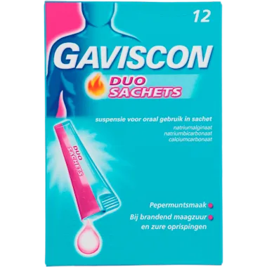 Bij brandend maagzuur en zure oprispingen # Gaviscon Duo Sachets zijn werkzaam bij brandend maagzuur en zure oprispingen.
