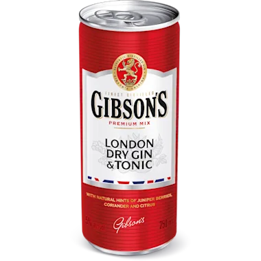 Ingredients: Tonic: 87,7% (water, sugar, carbon dioxid. acid: citric acid, natural flavouring, natural flavouring quinine), London Dry Gin) at 37,5%vol.): 12,3%.