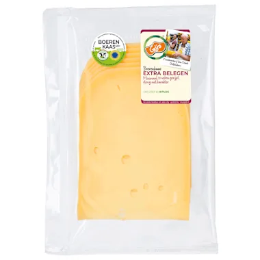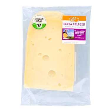 Boeren Goudse kaas 48+ Extra Belegen. Bereid met rauwe melk.