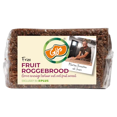 Ingrediënten: ROGGE [GLUTEN], water, 10% fruit (rozijnen, vijgen, appel,pruimen, cranberry), ROGGEmeel [GLUTEN], TARWEmeel, TARWEzemelen, rietsuiker, plantaardige olie, rijstmeel, zout, voedingszuren: E270, E330, conserveermiddelen: E200, E281, zuurteregelaar: E263.