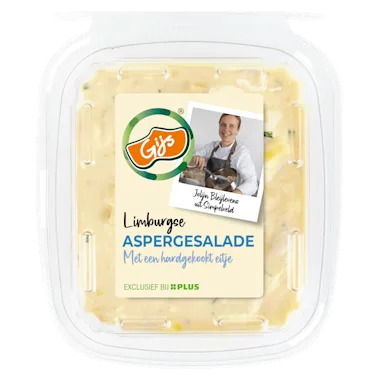 Ingrediënten: asperges (37%), aardappel, plantaardige olie (raapzaad), scharrelkippenei (EI), varkensvlees (5%), water, aroma (GLUTEN), zout, specerijen, conserveermiddel (E211, E202, E250), kruiden, voedingszuur (E330, E385), azijn, glucose-fructosestroop, mosterd (MOSTERD) (water, mosterdzaad (MOSTERD), azijn, specerijen), suiker, gemodificeerd zetmeel (maïs), verdikkingsmiddel (E412, E407), kleurstof (E160a), dextrose, stabilisator (E451, E452), antioxidant (E316), glucosestroop, zetmeel (aardappel).