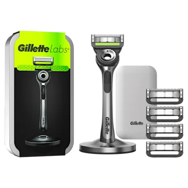 GilletteLabs With Exfoliating Bar van Gillette is het eerste scheersysteem ter wereld met exfoliatietechnologie in het handvat dat moeiteloos scheert en exfoliëert in één beweging. De exfoliërende strip van Gillette maakt het pad vrij vòòr de mesjes. De 2D FlexDisc-technologie volgt je gezicht voor comfort en contact bij elke beweging. Een navulmesje voor dit scheersysteem heeft 5 scherpe mesjes van Gillette en is ontworpen voor een moeiteloze scheerbeurt. Het handvat van het scheermes wordt geleverd met een magnetische houder en gaat levenslang mee. Bij het GilletteLabs scheersysteem zit een metalen reisetui voor het handig opbergen en bescherming onderweg. Gebruik met GilletteLabs navulmesjes die ook geschikt zijn voor de GilletteLabs Heated Razor. Bezoek : moneyback-gillettelabs.nl voor de volledige T&Cs.