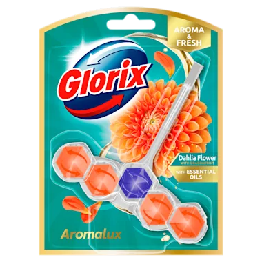 Glorix Aroma Lux Dahlia Flower & Dragonfruit Wc Blok geeft 24/7 een heerlijk frisse geur en heeft een actieve werking tegen onaangename geurtjes dankzij geconcentreerde parfumolie. Zo ruikt je WC altijd heerlijk fris! Bovendien zorgt de Aroma Lux wc-blok bij elke spoelbeurt voor glans en hygiënische reiniging, waardoor je iedere dag geniet van een aangenaam geurend en schoon toilet.