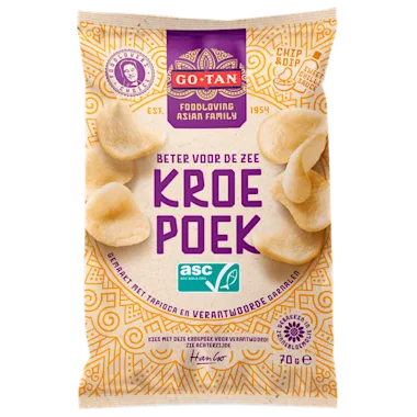 ASC kroepoek is gemaakt van tapiocameel en ASC gecertificeerde garnalen. Verantwoord en beter voor de zee garnalen. Vrij van toegevoegde smaakversterkers, conserveermiddelen, kunstmatige kleur- en smaakstoffen en gemodificeerd zetmeel.