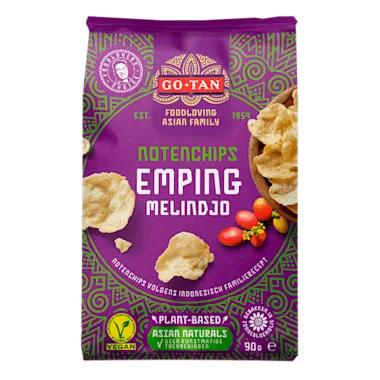 Deze nootachtige en vegetarische kroepoekvariant is heerlijk krokant en goed te gebruiken als snack of in een salade. Emping is glutenvrij en vrij van smaakversterkers. Ben jij op zoek naar een licht gezouten variant van Emping? Bekijk dan ook eens onze Emping Salted!