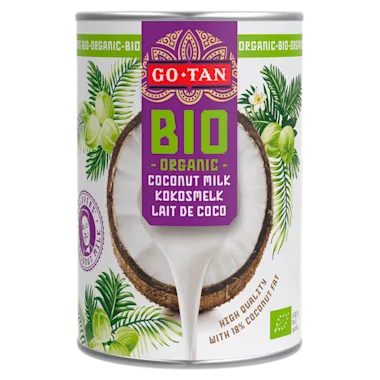 Go-Tan Kokosmelk biologisch, klaar voor gebruik in warme gerechten, smoothies en drankjes. Bevat 18% vet, wat staat voor een goede kwaliteit.