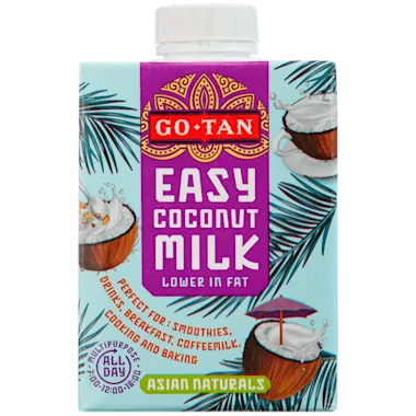Go-Tan Kokosmelk, klaar voor gebruik in warme gerechten, smoothies en drankjes. Bevat 8% vet, wat staat voor een goede kwaliteit.