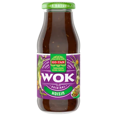 Go-Tan Asian Naturals Hoisin vegan, gemaakt met natuurlijke ingrediënten, zoals zwarte bonen en rijstazijn. Voor knapperige en gezonde (wok)gerechten.