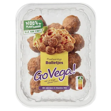 Voorgegaarde plantaardige balletjes op basis van gehydrateerde soja- en tarwe-eiwitten met toegevoegd ijzer en vitamine B12