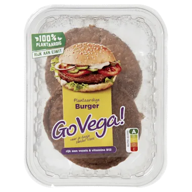 Voorgegaarde plantaardige burger op basis van gehydrateerde tarwe-eiwitten met toegevoegd ijzer en vitamine B12