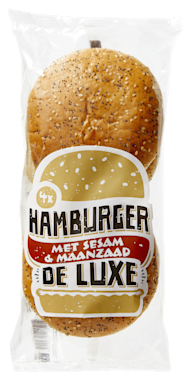Ingrediënten: TARWEBLOEM, water, bakkersgist, glucose-fructosestroop, raapzaadolie, 1,2% SESAMZAAD, 1,2% maanzaad, TARWEGLUTEN, suiker, bakkerszout, conserveermiddel: E200 en E282, emulgator: E471 en E482, voedingszuur: E263, MELKEIWIT, erwteiwit, enzym [TARWE], TARWEMOUTMEEL, meelverbeteraar: E300.
