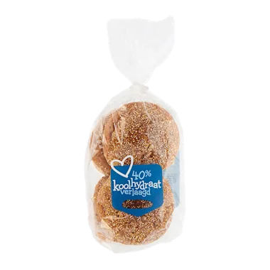 Koolhydraat verlaagd - vezelrijk - eiwitrijk. Deze bollen bevatten 40% minder koolhydraten dan een gemiddeld volkoren broodje (NEVO 2021) en passen hiermee in een koolhydraatverlaagd voedingspatroon. Vezels zijn goed voor een normale darmfunctie en eiwitten ter ondersteuning van de spieropbouw.