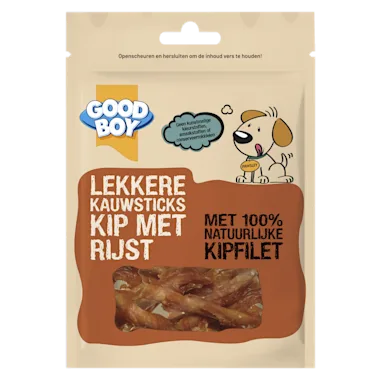 Deze Chewy Sticks met kip en rijst zijn niet alleen gemaakt met superlekker 100% natuurlijk kippenborstvlees en heerlijke rijst, maar het recept bevat ook geen runderhuid. De sticks bevatten daarnaast geen kunstmatige kleurstoffen, smaakstoffen of conserveermiddelen en ze zijn vetarm, dus ook nog eens gezond! Geen wonder dus dat honden gek zijn op deze snacks!