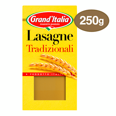 Maak makkelijk de lekkerste lasagne met Lasagne Tradizionale. Grand'Italia Lasagne Tradizionali wordt geproduceerd in Italië. We maken de pasta voor de lasagnebladen van kwalitatief pastabloem van harde tarwe. De harde tarwe geeft de pasta die heerlijk stevige 'al dente' bite. Om de kwaliteit te garanderen malen we de harde tarwe enkel in Italiaanse molens. Met onze pasta lasagnebladen kun je eindeloos variëren voor de makkelijkste en smaakvolle Italiaanse ovenmaaltijden. Pasta receptinspiratie nodig? Ga dan naar onze website. Buon appetito!