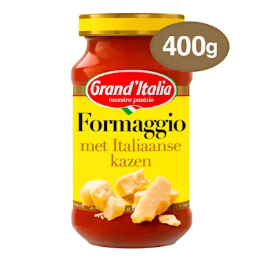 Ontdek Grand'Italia Formaggio pastasaus, een pastasaus met een mix van zoete zongerijpte tomaten en selectie van hartige Italiaanse kazen. Perfect voor een snelle, makkelijke pastamaaltijd!