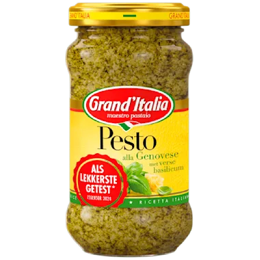 Grand'Italia Pesto alla Genovese heeft de hoogste score in een smaaktest (Essensor, 2025)! Dé smaakmaker voor iedere pasta pesto, of als dressing voor de (pasta)salade. Geniet van de smaak van verse Italiaanse basilicum in iedere hap!