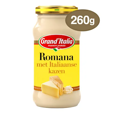 Ontdek de smaak van Italië met Grand'Italia Romana pastasaus. Een pastasaus met drie Italiaanse kazen. Een kaassaus vol van smaak en perfect voor een heerlijke kaas-pasta!