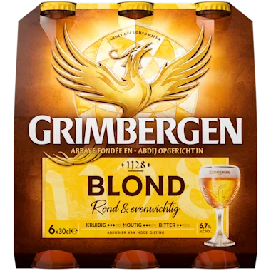 Verwen jezelf met een Grimbergen Blond. Dit goudblonde en heldere bier is de meest toegankelijke Grimbergen-variant. De grondstoffen van uitstekende kwaliteit zijn de rijkdom van dit blonde hoge gistingsbier. Grimbergen Blond is licht fruitig en heeft een goede balans tussen een zoete en een bittere smaak.