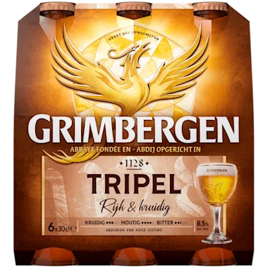 Grimbergen Tripel is een amberblond abdijbier met een bitterzoete, pittige en uiterst volronde smaak met warme afdronk. De typische Tripel-smaak ontstaat door de blonde kandijsuiker en mengeling van verschillende hopsoorten.