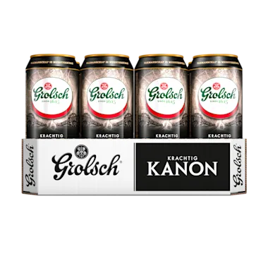 Grolsch Krachtig Kanon is krachtig en vol van smaak. Helder en licht van kleur. Speciaalbier met aroma’s van rijpe vijgen en jeneverbes. Het kanon als ode aan de onverzettelijkheid van de Grollenaren. Want samen is sterker dan alleen. Waar en met wie je dit speciaalbier ook drinkt. Tijd voor Grolsch.