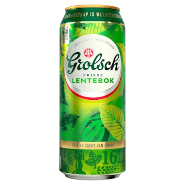 Grolsch Frisse Lentebok is fris en zacht van smaak. Helder en amberkleurig bokbier. Met aroma’s van citrus en groene appel. Proef de aroma' s van de lente. Als de zon zich weer laat zien, is het tijd elkaar buiten op te zoeken. Tijd voor Grolsch.