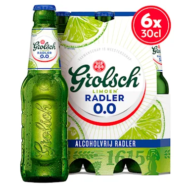 Grolsch Radler Limoen 0.0% is verfrissend van smaak en licht van kleur. In deze alcoholvrije Radler komen écht bier en écht vruchtensap samen. Want samen is alles mooier. Tijd voor Grolsch.