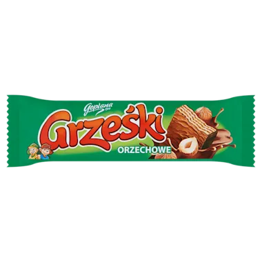 Grzeski Wafel met hazelnootcréme in melkchocolade.