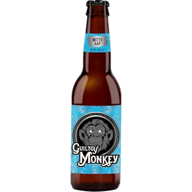 De Witte Aap van Guilty Monkey is een heerlijk troebel witbier. Dit witbier is gemaakt om optimaal te genieten van de zon, op een terras of gewoon lekker in jouw achtertuin. Dit zachte, verfrissende bier heeft zijn smaak te danken aan de Cascade hop, speciale gist, tarwe-, pilsmout en de toevoeging van zoete sinaasappelschil. Drink de Witte Aap ijskoud, dan komt hij het allerbest tot zijn recht!