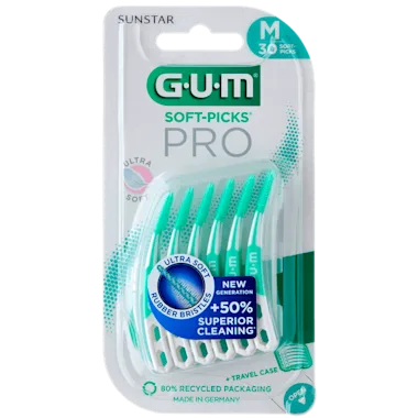 Als je wilt beginnen met interdentaal reinigen of op zoek bent naar een gemakkelijker alternatief voor flossen, dan is dit interdentale product de oplossing voor jou. GUM SOFT-PICKS PRO is de nieuwste innovatie in ons interdentale assortiment en is een geweldige keuze voor elke dagelijkse interdentale reiniging, vóór het poetsen met een tandenborstel.
