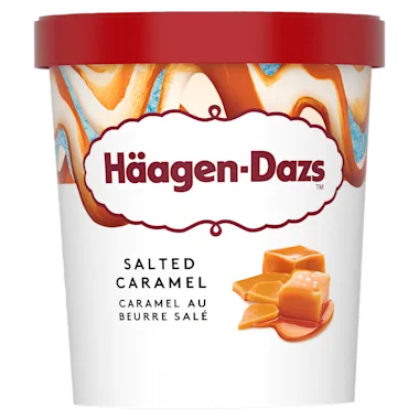 Karamel roomijs met gezouten karamel saus (10%) en gezouten stukjes karamel (8%).