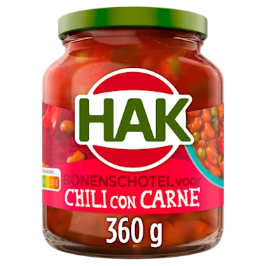 bruine bonen 35%, groenten in wisselende verhoudingen 26% (wortel, ui, groene paprika, rode paprika, doperwt), water, tomatenpuree, natuurlijke aroma's, maiszetmeel, suiker, zeezout, voedingszuur (citroenzuur).