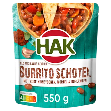 Bij HAK willen we het graag lekker en gemakkelijk maken Om bonen en groenten te eten. Daarom hebben we deze Burrito schotel met rode kidneybonen gemaakt. Daarmee Zet je snel en gemakkelijk een goede maaltijd met bonen en groenten op tafel. Deze burrito schotel is op smaak gebracht met heerlijke kruiden, specerijen en slechts een snufje zeezout. Dat geeft een lekkere pure smaak.