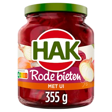 Ingrediënten: Rode bieten* (72%), water, ui* (4%), kruidenazijn*, rietsuiker*, maiszetmeel*, zeezout, rode bietenconcentraat*. *Van biologische oorsprong.