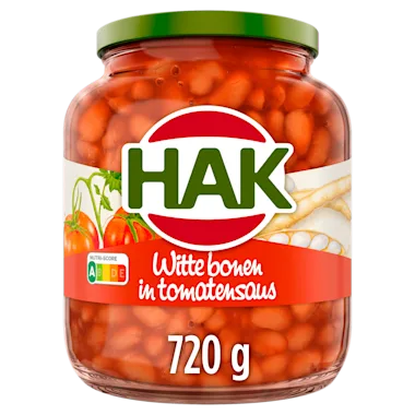 witte bonen 61%, water, tomatenpuree 16%, suiker, zeezout, natuurazijn, maiszetmeel, natuurlijk kruidenaroma.
