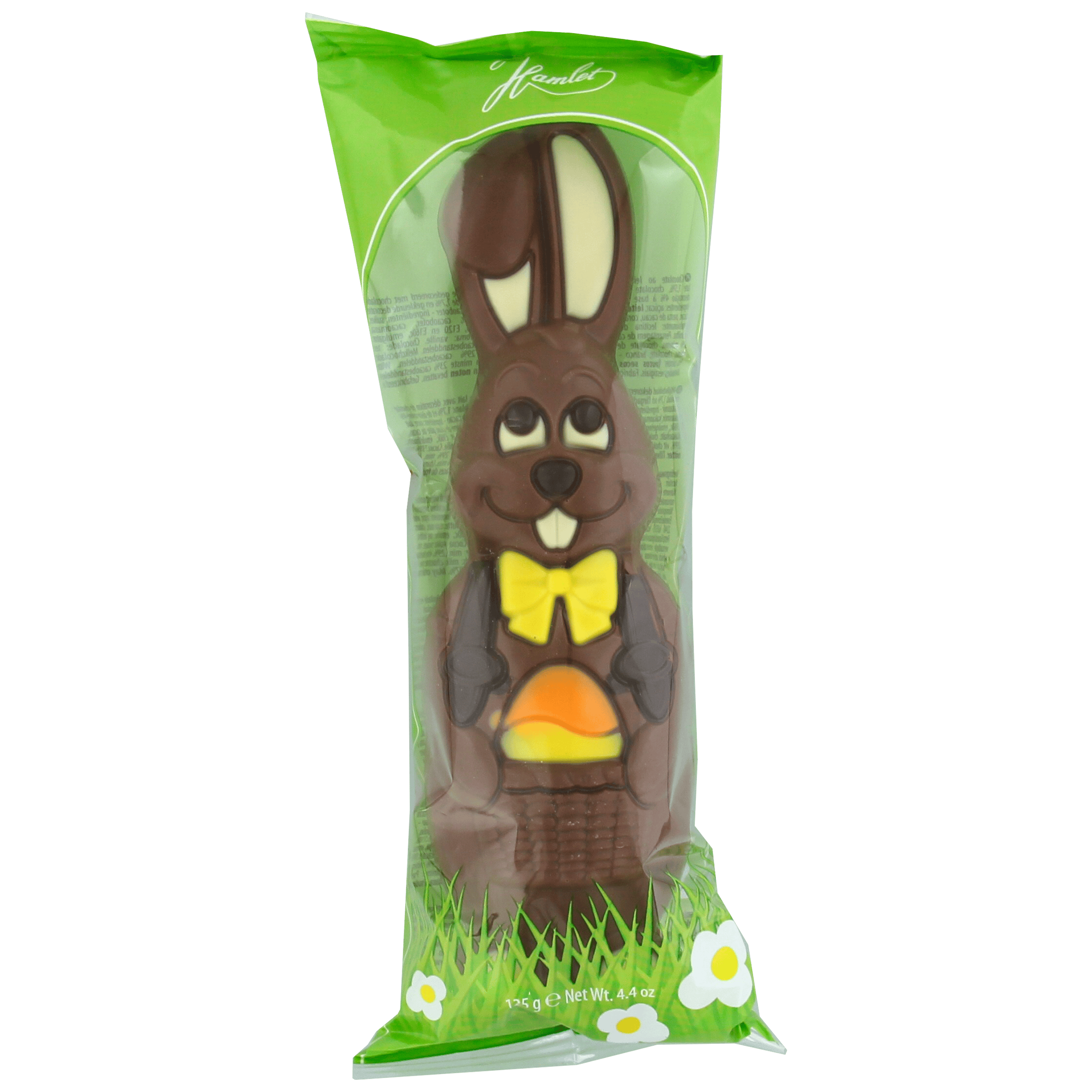 Uniek gedecoreerde Paashaas gemaakt van Belgische chocolade.
