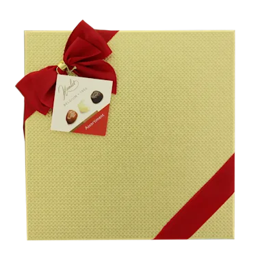 Feestelijke verpakking met een ruime keuze aan pralines. De pralines zijn een combinatie van Belgische chocolade (wit – melk – donker) en een verrukkelijke vulling. Kies uit smeuïge praliné, frisse framboos of sinaasappel, zoete karamel of klassieke fondant.
