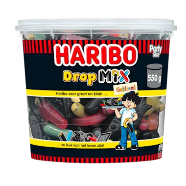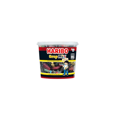 Drop, drop, drop; dat is de HARIBO Dropmix in een notendop. Dropmix bevat alle bekende HARIBO drop-snoepjes in één mix