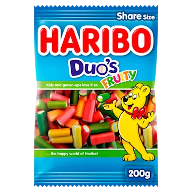 Duo's Fruity zijn fruitige staafjes met een zachte, romige, tweekleurige vulling. Dubbel zo lekker snoepen!