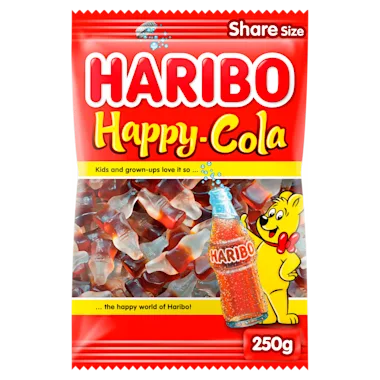 Les je dorst naar heerlijke colasmaak met de klassieke smaak van HARIBO Happy Cola! Happy Cola zorgt voor een explosie van smaak die niet te bevatten is!