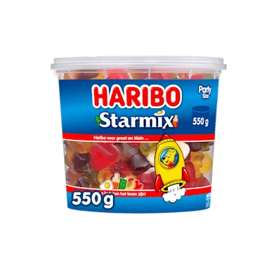 Starmix is een heerlijke ontdekkingsreis door het kleurrijke universum van HARIBO. Van hartjes tot fruitgom ringen en de legendarische Goudberen. Een kosmisch smaakavontuur voor het hele gezin.