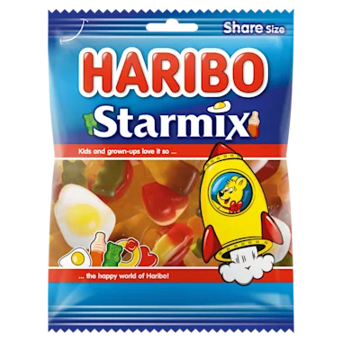 Starmix is een heerlijke ontdekkingsreis door het kleurrijke universum van HARIBO. Van hartjes tot fruitgom ringen en de legendarische Goudberen. Een kosmisch smaakavontuur voor het hele gezin.