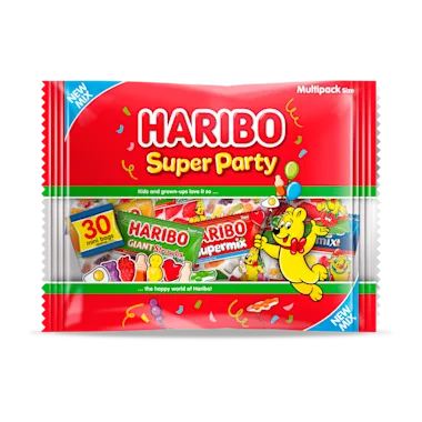 Liefhebbers van HARIBO houden sowieso wel van een feestje, maar met Super Party is het écht feest! Een grote uitdeelverpakking met ca. 30 minizakjes in verschillende soorten.