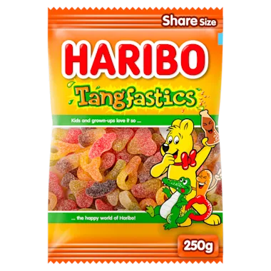 HARIBO Tangfastics zorgen voor een fantastische smaak met een druppeltje zoet en een druppeltje zuur. Fantastisch? Tangfastics!