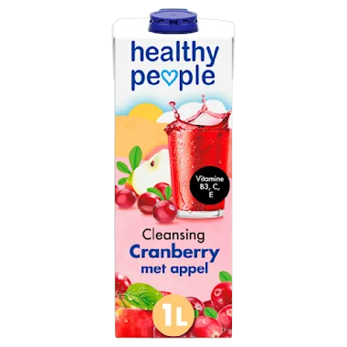 Cleansing Cranberry. Een verfrissende vruchtensap met de unieke smaak van cranberry’s, Van nature bomvol vitamines en mineralen. Heerlijk doordrinkbaar door de toevoeging van appel. Met de positieve werking van vitaminen! Vitamine B3 voedt de huid (van binnenuit). Vitamine C voor inwendige huidverzorging en helpt lichaamscellen te beschermen tegen invloeden van buitenaf. Vitamine E helpt het (natuurlijk) afweersysteem van de lichaamscellen.