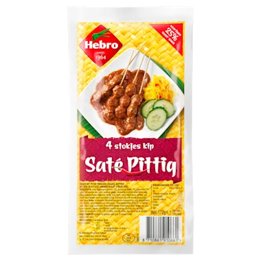 Hebro Stokjes Kip Saté Pittig 4 Stuks 172 g Tray